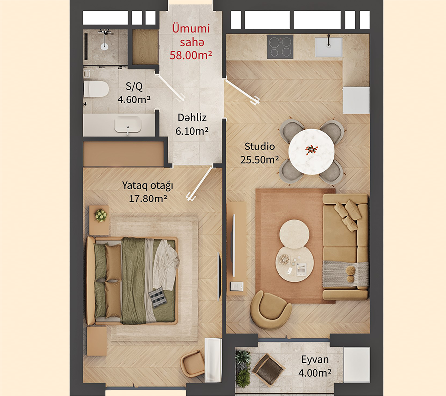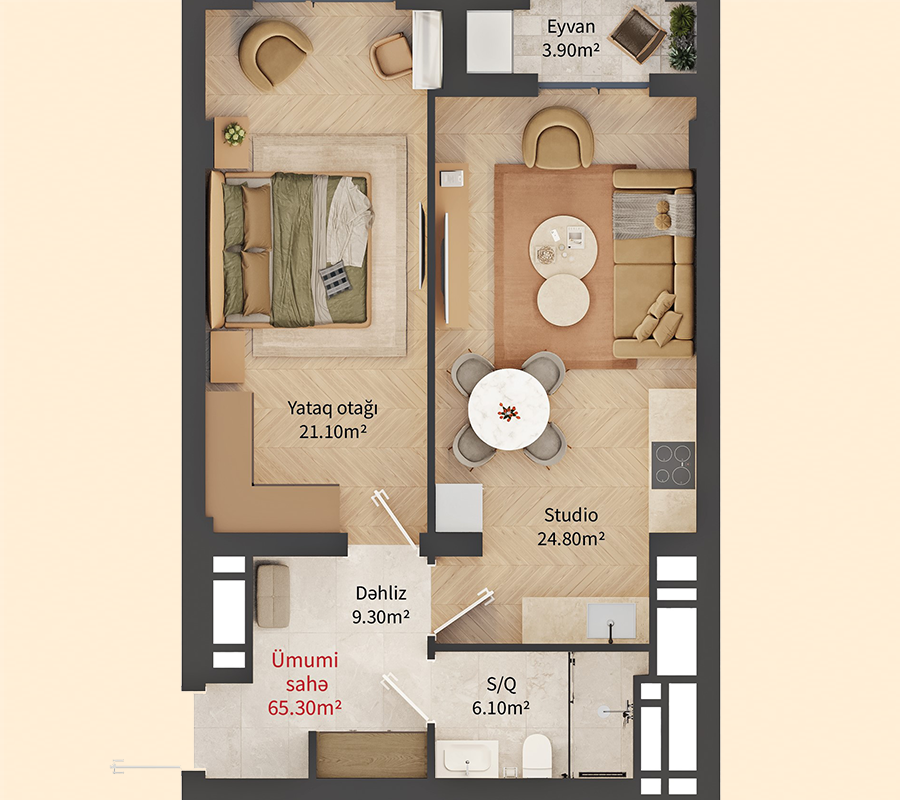 Mənzillər / 1+1 otaq