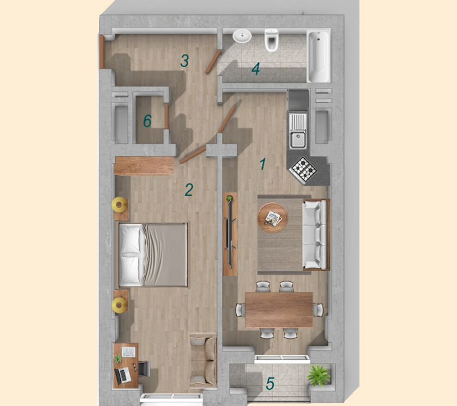 1. Studio - 25.00 m²